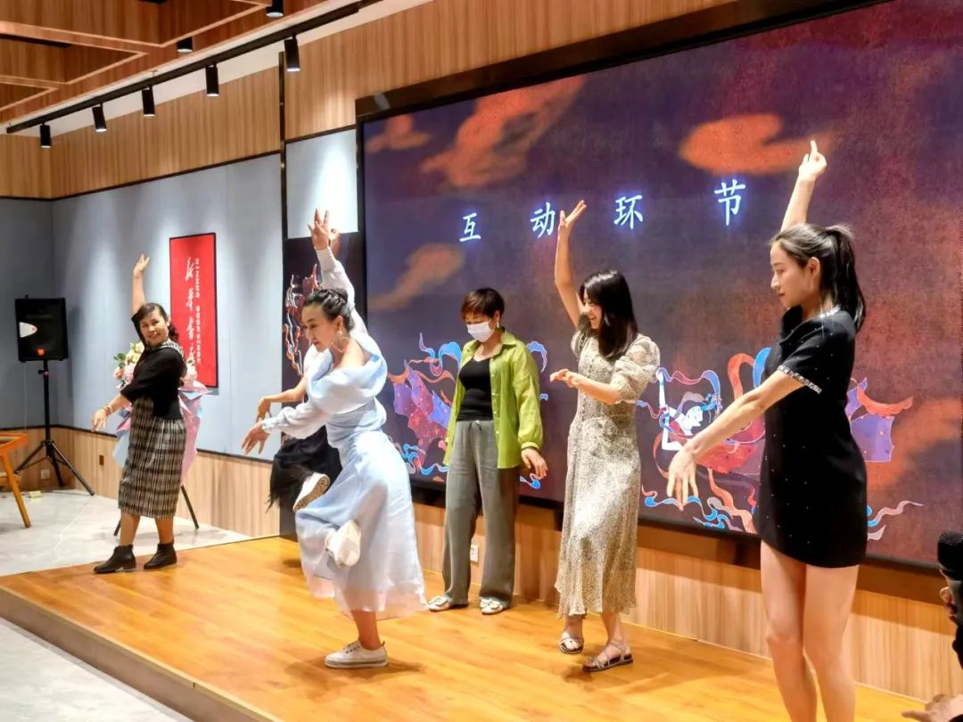 見面會還設(shè)計(jì)了互動(dòng)環(huán)節(jié),主編李莉現(xiàn)場教學(xué),五位敦煌舞愛好者認(rèn)真模仿,作者還向參與互動(dòng)的讀者贈(zèng)送了本書。在簽售環(huán)節(jié)后,作者及參演人員和讀者合影留念。