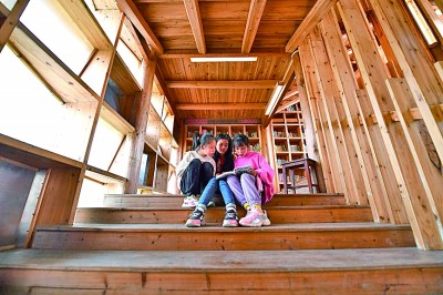 在江西萬載縣馬步鄉(xiāng)洞口村,老師和學(xué)生們?cè)诹鴺湎麻喿x。鄧龍華攝/光明圖片