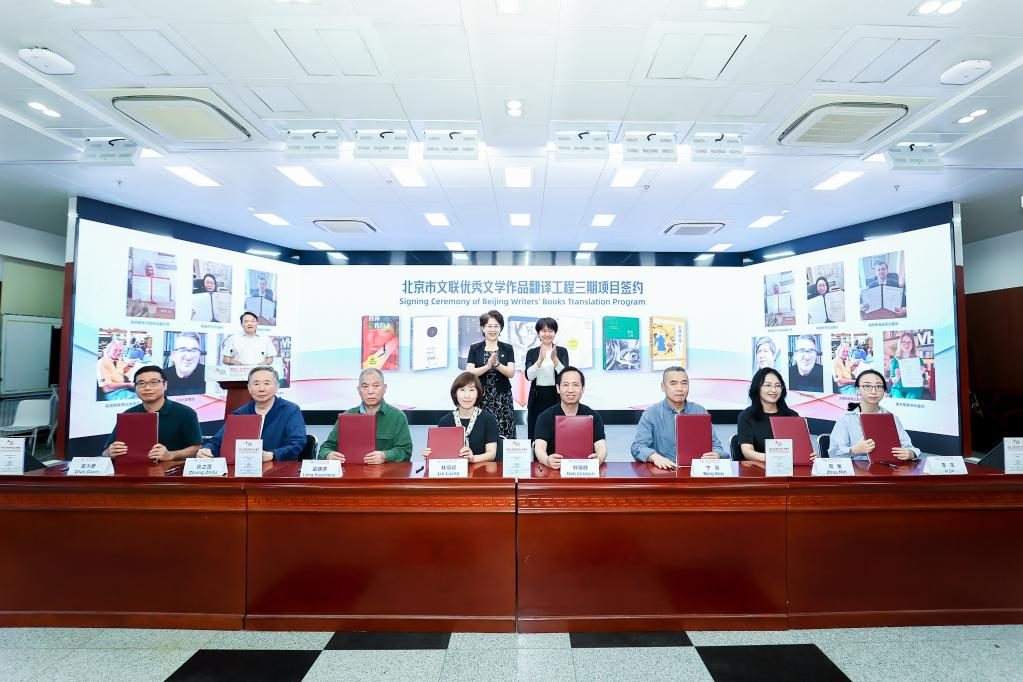 開幕式上,發(fā)布了北京市文聯(lián)優(yōu)秀文學作品翻譯工程圖書成果,周曉楓《星魚》意大利文版和英文版、葉廣芩《花貓三丫上房了》法文版、星河《北京小子》阿文版集中亮相。梁曉聲《我和我的命》、張之路《吉祥時光》、格非《月落荒寺》、畢淑敏《預(yù)約死亡》、肖復(fù)興《我們的老院》、張悅?cè)弧段已鸸舛鴣怼?、寧肯《蒙面之城?部作品簽署版權(quán)輸出協(xié)議,這些優(yōu)秀文學作品即將“走出去”與海外讀者見面。
