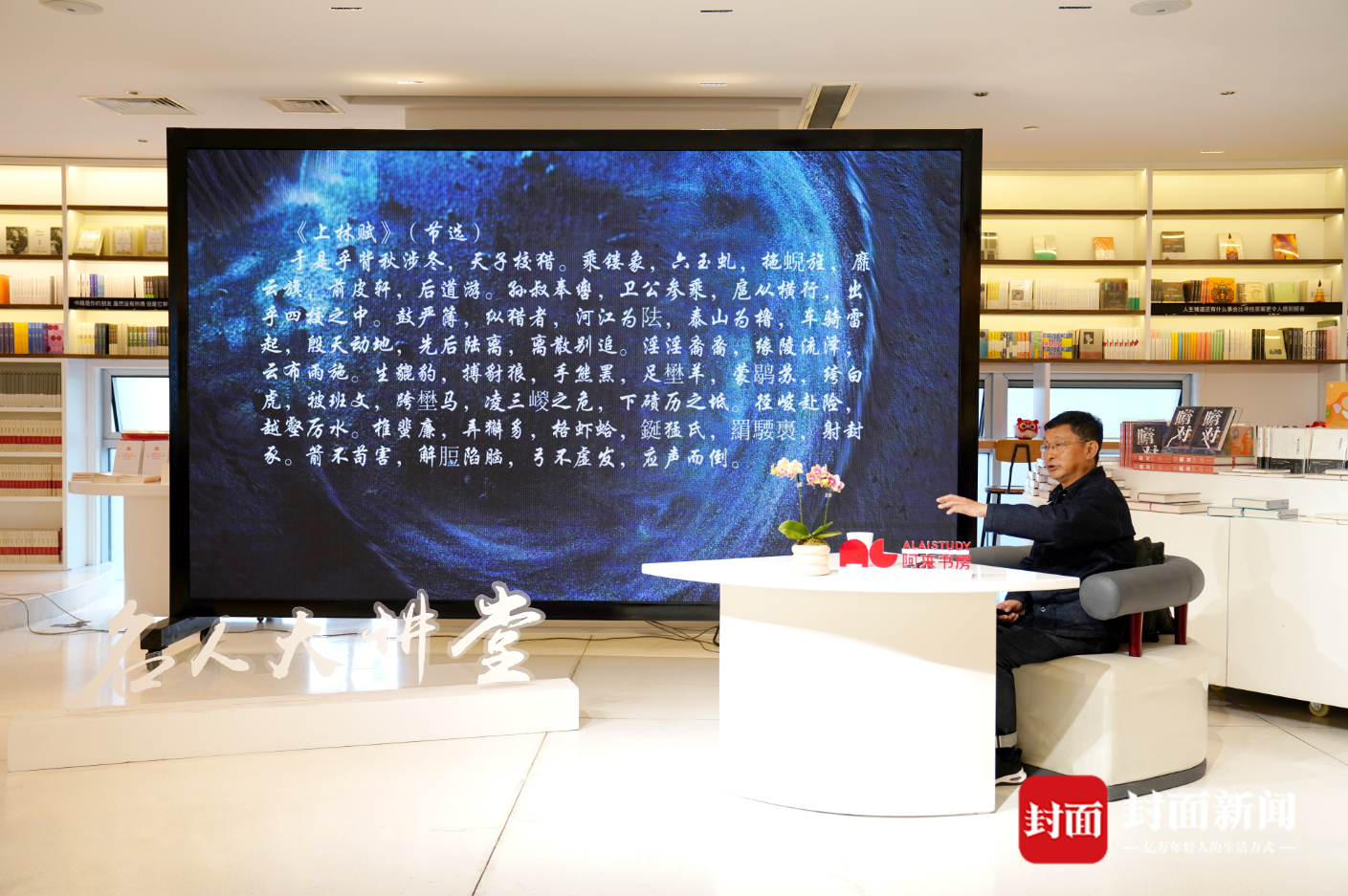 11月18日下午,中國作協(xié)副主席、四川省作協(xié)主席、著名作家阿來,在阿來書房登上“名人大講堂”的講臺,以“酒肆人間世,琴臺日暮云——理解司馬相如的一生”為題目,分享他多年閱讀、思考司馬相如其人其文的智慧收獲。