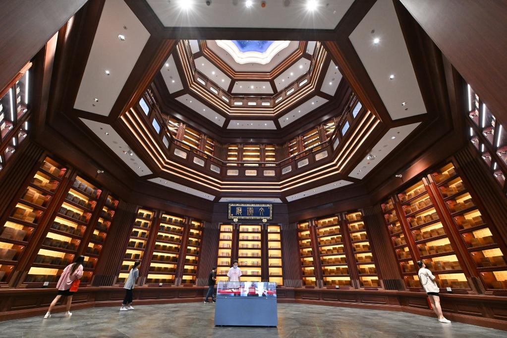 2022年7月30日,觀眾在中國國家版本館中央總館文瀚廳內(nèi)參觀。中國國家版本館是國家版本資源總庫和中華文化種子基因庫,由中央總館文瀚閣、西安分館文濟(jì)閣、杭州分館文潤閣、廣州分館文沁閣組成,歷時(shí)三年建設(shè),全面履行國家版本資源保藏傳承的職責(zé)。
