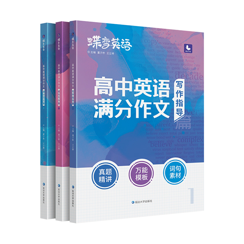 《蝶變英語作文套裝》共3本:分別是寫作指導(dǎo),模擬寫作和滿分作文。其指導(dǎo)內(nèi)容細(xì)分為提綱作文,圖表作文,圖畫作文,開放作文,常用表達(dá)。寫作指導(dǎo)部分對書信,通知,發(fā)言稿,混合型應(yīng)用文,都有詳細(xì)的指導(dǎo)內(nèi)容。