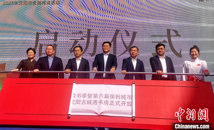 與會(huì)領(lǐng)導(dǎo)啟動(dòng)沈河區(qū)第十五屆全民讀書(shū)季暨第六屆保利城市閱讀馬拉松?!≮w桂華 攝