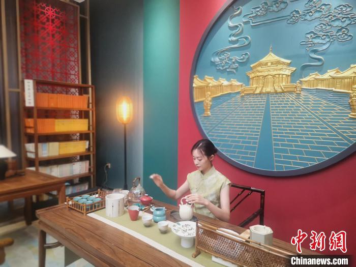中新網(wǎng)沈陽(yáng)4月19日電(記者 趙桂華 王藝霖) 中式園林的實(shí)景幕墻掩映著古風(fēng)桌椅、宮廷地?zé)?、中式?shū)架等微景觀,讓讀者暢游書(shū)海的同時(shí),仿佛置身中國(guó)古代書(shū)院書(shū)房之中。