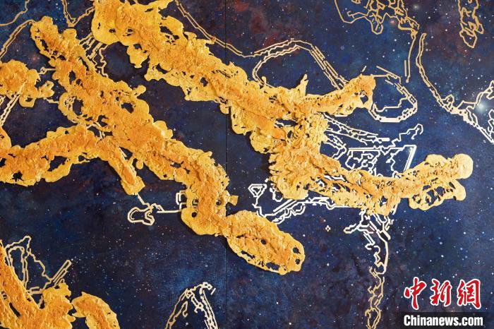 記者了解到,這幅熔銅壁畫采用國家級(jí)非遺銅雕技藝,結(jié)合熔銅藝術(shù)、釉彩著色等創(chuàng)新技藝制作而成,從設(shè)計(jì)、制作、誕生,全程歷時(shí)一年,難度很大。壁畫以朱炳仁手繪的星空“云水墨”制作,用大面積深藍(lán)宇宙為底,采用熔銅藝術(shù)構(gòu)成繁星點(diǎn)點(diǎn)。