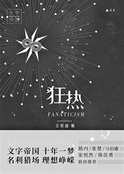 2010年10月發(fā)表于《萌芽》雜志的《文字帝國·微生》,是王若虛“文字帝國”的首秀。這篇小說頗具少年維特之煩惱色彩,講述了文學(xué)青年的青春躁動與命運(yùn)沉浮。隨后發(fā)表的系列小說《瘋女王》《小宇宙》《同小姐》,到《沒有書的圖書館》《光環(huán)》《腰封無用》等具有一致性和連貫性——它們?nèi)烤劢刮膶W(xué)青年的成長史,描寫他們在面對選擇時的焦慮與茫然、沖動和欲望,借以展現(xiàn)21世紀(jì)初的“青春”的文學(xué)史。《狂熱》作為這一系列最新的長篇小說,將眼光投向聚光燈外的無名作家和小眾作家,以后青春式的視角重新回到21世紀(jì)初的文學(xué)現(xiàn)場。新作中,王若虛采用了一種更加貼近當(dāng)下與現(xiàn)實(shí)的維度重新審視當(dāng)時的文學(xué)創(chuàng)作,展示時代變化中理想與欲望的糾葛,緬懷屬于“80后”一代的特殊記憶。