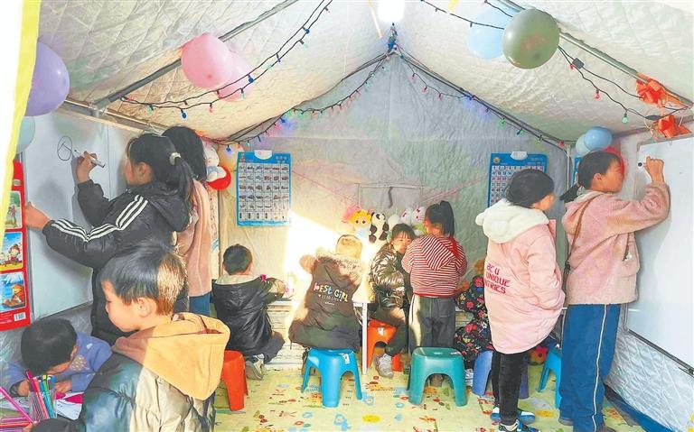 12月24日下午,積石山縣大河家鎮(zhèn)大河村安置點(diǎn)上,傳來(lái)孩子們瑯瑯讀書(shū)聲。