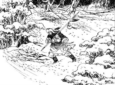 《水滸傳》用豐富細節(jié)塑造了一個有血有肉的林沖形象。圖片選自連環(huán)畫《水滸傳·風雪山神廟》。資料圖片