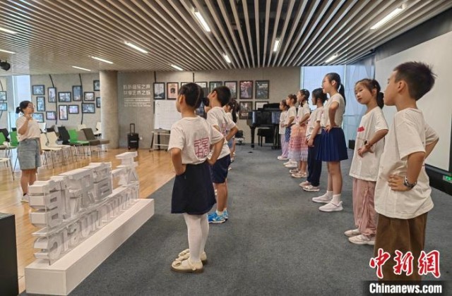 寧波圖書館的“天一童藝”公益項(xiàng)目現(xiàn)場,孩子們跟著老師學(xué)唱由《千字文》改編的歌曲?!≈行戮W(wǎng)記者 應(yīng)妮 攝