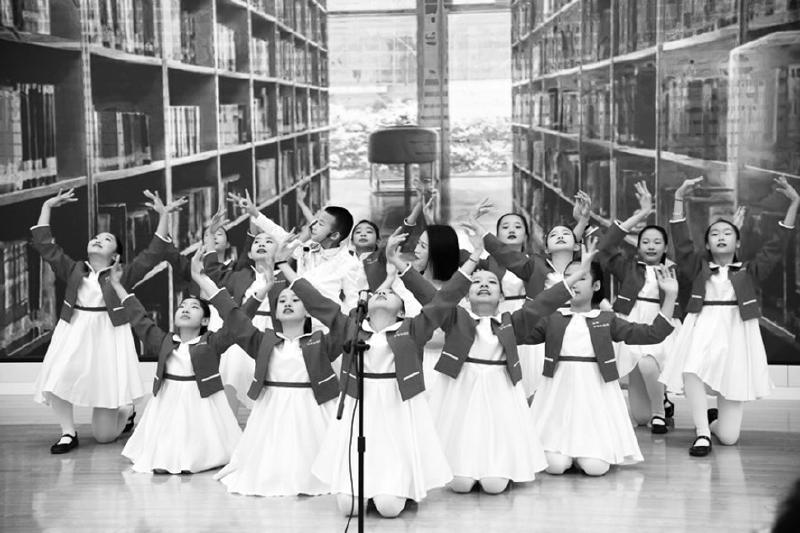 遼寧省開原市民主教育集團(tuán)“納蘭合唱團(tuán)”在發(fā)布會現(xiàn)場表演節(jié)目《老師》,以表達(dá)對老師的熱愛。 遼海出版社 供圖