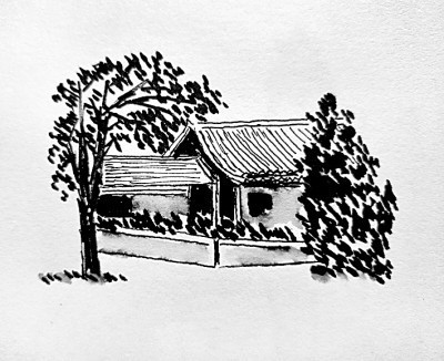 老槐樹旁的舊居 肖復(fù)興繪