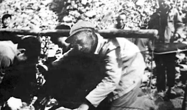 時任寧化縣隆陂水庫總指揮的谷文昌(中)與群眾同勞動,此時他已經(jīng)55歲。