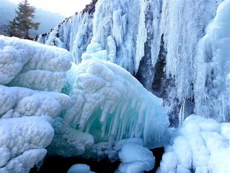 往前走,山和山之間的天顯得窄小了,抬頭,并沒(méi)有鷹飛過(guò)。懸崖峭壁上是一簾簾冰掛冰瀑,老天爺最寫(xiě)意的畫(huà)作,是用白水晶,羊脂玉做成的。心里沸騰著歡喜,眼睛卻被這世界上最純凈的光芒刺出了淚,這凝固的千堆雪,這些白玉蘭,這些合歡樹(shù),對(duì)嗎?不對(duì)。這些冰瀑,站在遠(yuǎn)處和近處看到的物像都不相同,正面和側(cè)面觀看,更是形態(tài)各異。