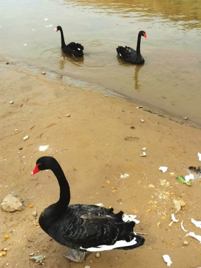 “黑天鵝還是第一次看到,3只都很漂亮,吸引了好多市民觀看。”3月25日下午,81歲的退休職工張體成向本報新聞熱線4286666反映,這3只黑天鵝在西固的黃河邊安“家”已有好長時間了,每天都有愛護動物的市民前來給它們喂食。不管這些是野生還是家養(yǎng)黑天鵝,希望有關部門保護起來,以免因喂食發(fā)生意外。
