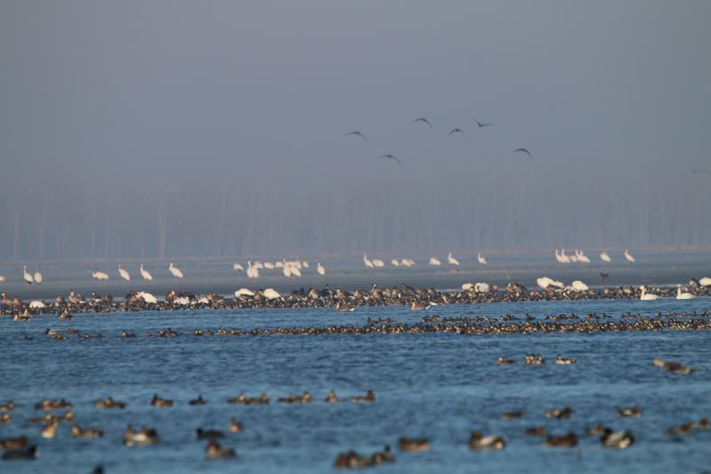 隨著環(huán)境保護(hù)、退耕還濕工作的推進(jìn),獾子洞濕地面積已經(jīng)達(dá)到歷史最大,成為候鳥遷徙的重要驛站,每年春秋兩季,這里都會呈現(xiàn)萬鳥云集、欣欣覓食的生態(tài)場景。“飛時(shí)猶如云遮日,落時(shí)不見湖邊草”,堪稱世界奇觀。(郭蕾 于勝地、常繼民)