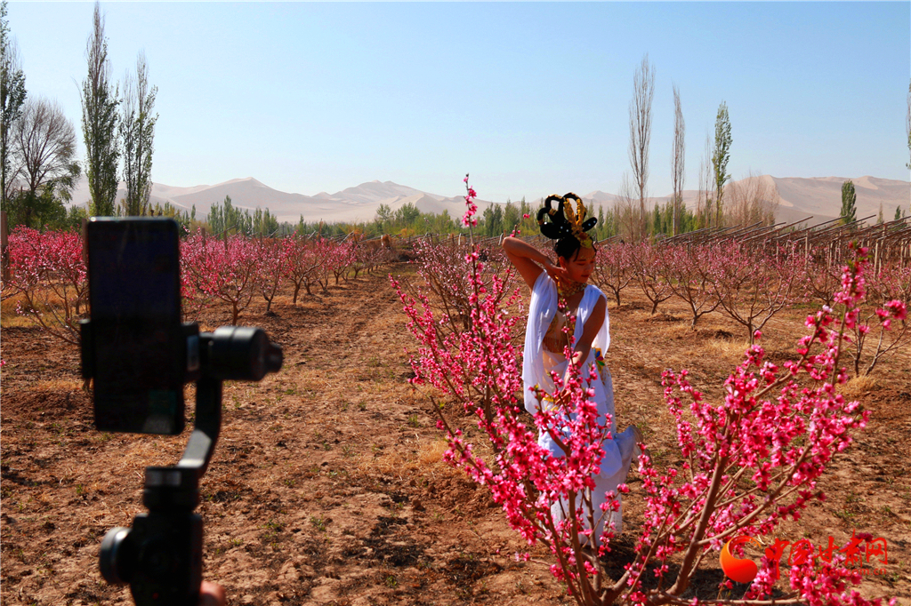 近日,位于鳴沙山下的甘肅省敦煌市七里鎮(zhèn)的5000余畝桃花競相綻放,芬芳爭艷,分外迷人。目前,桃產(chǎn)業(yè)已成為該鎮(zhèn)富民強(qiáng)鎮(zhèn)的主導(dǎo)產(chǎn)業(yè)之一。