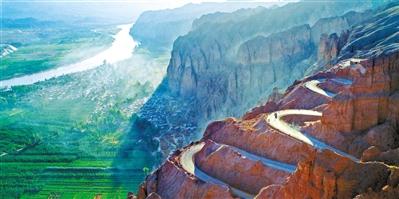 二十二道彎:落差206米的盤山路,近180度的彎道22個(gè)坡陡彎急,路旁巍峨石峰視線所及是黃河曲流、綠洲農(nóng)莊,俯瞰是最震撼動人的角度。