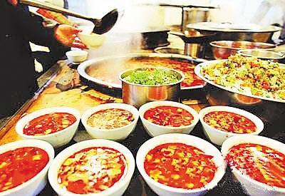 在晾面的時候,主婦開始炒菜,做湯頭。做菜前,先要熟些新鮮的油潑辣子,在辣面中調(diào)入少許精鹽與調(diào)和粉,將熱好的胡麻油“嗞拉”一聲傾入辣子面中,香辣之味頓時充滿一室。然后開始燴菜做湯頭。只見主婦有條不紊地將切好的菜丁逐一擱進油鍋里,反復翻炒,適時放入大香、桂皮、草果、生姜、花椒等制成的混合調(diào)料與精鹽,等香味炒出來了,便漩入提前燒好的開水,火關(guān)小,讓其慢熟。