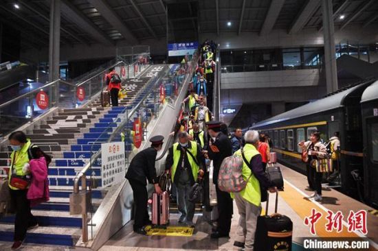 10月8日,旅客走出鐵路北京南站5號(hào)出站口。 中新社記者 田雨昊 攝