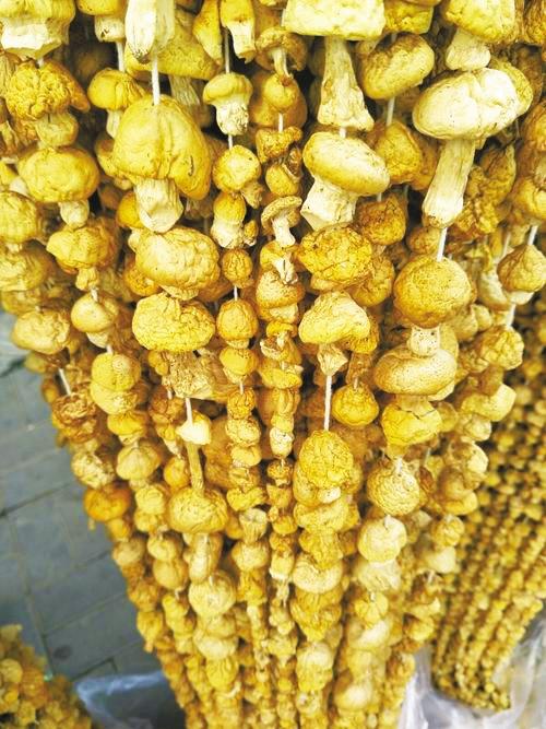 在張掖的土特產(chǎn)品店有售賣晾干的祁連山野蘑菇——出產(chǎn)于祁連山海拔1700至3600米左右的平山坡一帶無(wú)污染地區(qū),氣味純正、芳美可口,備受人們的青睞。于是在張掖一帶,便多了一種美食——野蘑菇面片。有幸在當(dāng)?shù)匾患业昶穱L一番,鮮美無(wú)比。