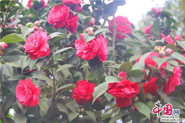 一輪艷陽照四方,一席春風綠千山。山茶花是中國傳統(tǒng)名花,也是世界名花之一。2月21日,朋友相約,從縣城出發(fā),約8公里就進入九龍生態(tài)園,姿態(tài)各異的山茶花已進入盛花期,樹姿虬勁優(yōu)美,綠葉四季不凋,一朵一朵的茶花大如牡丹,燦如云霞,風姿綽約,耀眼生輝!植株形姿優(yōu)美,葉濃綠而光澤,花形艷麗繽紛,美艷了。有的鮮紅如火、有的嬌羞染粉、有的晶瑩潔白……滿園茶花勝景。不經(jīng)意間清風吹過,暗香徐來,朵朵花兒隨風舞。陽光穿透葉子的縫隙,落在花間小道上,花香彌漫整個鼻腔,放低自己,品味花香,眼里有花、心里有花,人生就會像花一樣美麗。