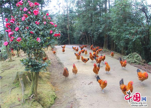 茶花具有“唯有山茶殊耐久,獨能深月占春風”的傲梅風骨,又有“花繁艷紅,深奪曉霞”的凌牡丹之鮮艷,因此自古以來就是極富盛名的木本花卉,在唐宋兩朝達到了登峰造極之境,直到十七世紀引入歐洲后,造成轟動,也因此獲得“世界名花”的美名。九龍街道牛街居委會小寨土雞生態(tài)產(chǎn)業(yè)園嬌艷的茶花給人一種神圣感,同時被賦予了一種原始的信仰:山茶是春天的神木,是春天的圣樹。置身九龍小寨土雞生態(tài)產(chǎn)業(yè)園,來一場與森林的浪漫邂逅,恍如仙境。園里有枇杷林、櫻桃林、楊梅林、梨樹林、紅豆杉林、柏樹林、椿樹林、油桃林、核桃林、灌木林以及草莓園、蔬菜園、山茶花園、荷花園,樹下是一群群羽毛鮮亮的土雞悠閑地覓食,好一幅田園風景畫!