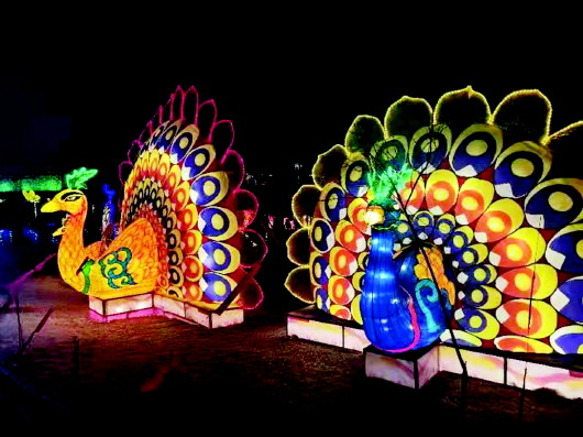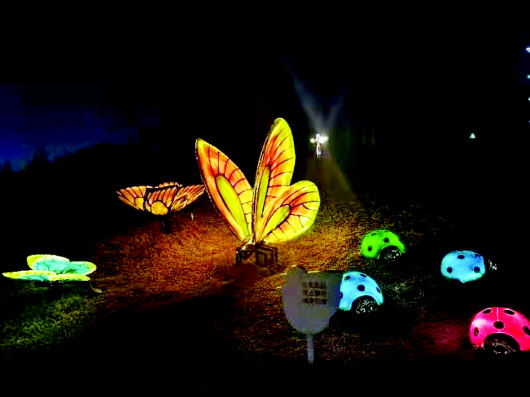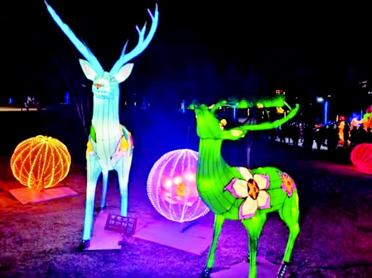 花燈競起,五夜齊開。連日來,市區(qū)金嶺公園夜晚流光溢彩,一組組色彩艷麗、造型精美、構(gòu)思巧妙、寓意吉祥的大型花燈將公園裝扮得五彩繽紛、喜氣洋洋。燈的海洋,夜的霓裳,造型各異的花燈惹人注目,吸引了眾多市民前來觀賞,也給即將到來的元宵佳節(jié)帶來濃濃的喜慶氣氛。