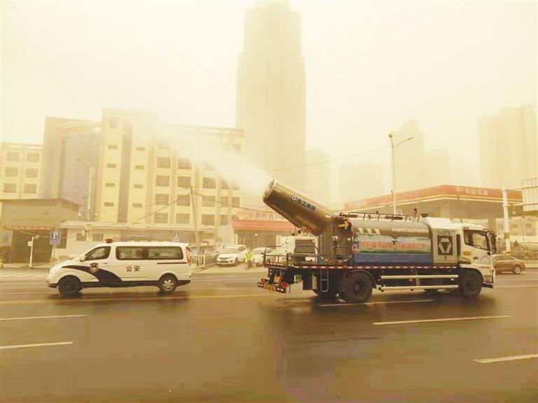 噴霧車正在降塵作業(yè)。通訊員 豆愷霞 攝