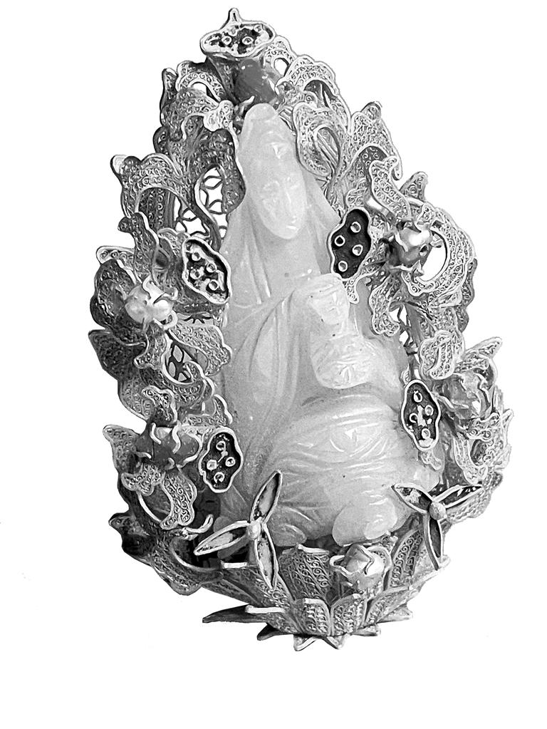 1986年,蘭州市博物館對白衣寺塔進行整體維護,從塔剎天宮處發(fā)現明代珍貴文物46件,其中有《大方廣佛華嚴經》、鎏金釋迦牟尼銅造像、明代印花絲巾等文物,尤其是金蓮玉雕抱子觀音簪和金蓮玉雕魚籃觀音簪,造型精致,做工精美,表現了很高的明代金累絲手工制造技術水平,簪柄有銘文21字,“崇禎五年捌月初拾日肅王妃熊氏施伴讀姚進兼裝”,被定級為國家一級文物。