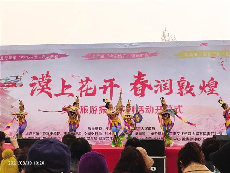 三月的敦煌,春風(fēng)拂面,漠上花開。鳴沙山下,十里杏花爭相綻放;黨河兩畔,千畝桃花含苞待放;春風(fēng)蕩漾,早酥梨基地花苞滿枝丫。鮮花以自己的嬌媚打開了戈壁大漠的春天。敦煌市將以“春”為韻腳,“花”為主角,開展“漠上花開·春潤敦煌”鄉(xiāng)村旅游振興系列活動。包括“杏花帶雨·霓裳舞春”“桃花始開·詩詞吟春”“梨花千樹·曲藝鬧春”3場主場活動,以及徒步踏青、康體騎行、研學(xué)體驗(yàn)等5項(xiàng)主題活動,并將組織開展敦煌服走秀、桃花詩會、非遺曲子戲表演等多項(xiàng)鄉(xiāng)村旅游特色配套活動。
