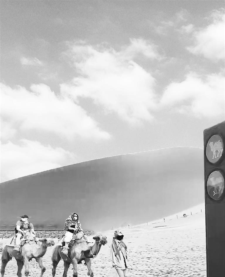 駱駝元素交通信號燈亮相鳴沙山·月牙泉景區(qū)