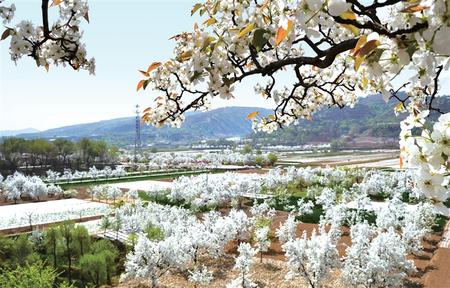 臨洮縣龍門(mén)鎮(zhèn)東三十里鋪村千畝梨花漸次盛開(kāi)。