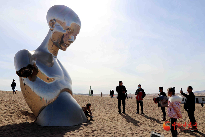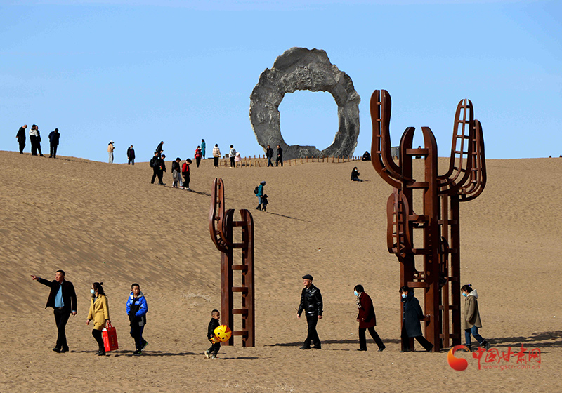 “在沙漠里賞雕塑、過(guò)大年,已經(jīng)成為一種‘新年俗、新常態(tài)、新時(shí)尚’。” 民勤縣文體廣電和旅游局局長(zhǎng)方煜介紹說(shuō),中外藝術(shù)大師們精心創(chuàng)作的117件雕塑藝術(shù)精品永久矗立在浩翰沙漠中,見(jiàn)證了一個(gè)從無(wú)到有、點(diǎn)“沙”成金的奇跡,成就了全球首個(gè)沙漠雕塑藝術(shù)主題公園,四海賓朋聞?dòng)嵪嗉s、絡(luò)繹而來(lái),感受民勤生態(tài)環(huán)境治理成果,見(jiàn)證民勤生態(tài)文明建設(shè)成效。