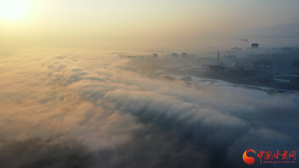 2月8日清晨,甘肅張掖市高臺縣黑河國家城市濕地公園上空霧浪翻滾,虛無縹緲,恍如天宮仙境,呈現(xiàn)出海市蜃樓般的云海奇觀,在陽光的照射下,格外美麗。由于多年來黑河生態(tài)治理,冬天封凍,加之近日大范圍的降雪低溫天氣,黑河的水面上經(jīng)常霧氣蒸騰,兩岸的樹木玉樹瓊花,形成霧凇景觀,如同童話世界里的仙境一般圣潔,令人心曠神怡。