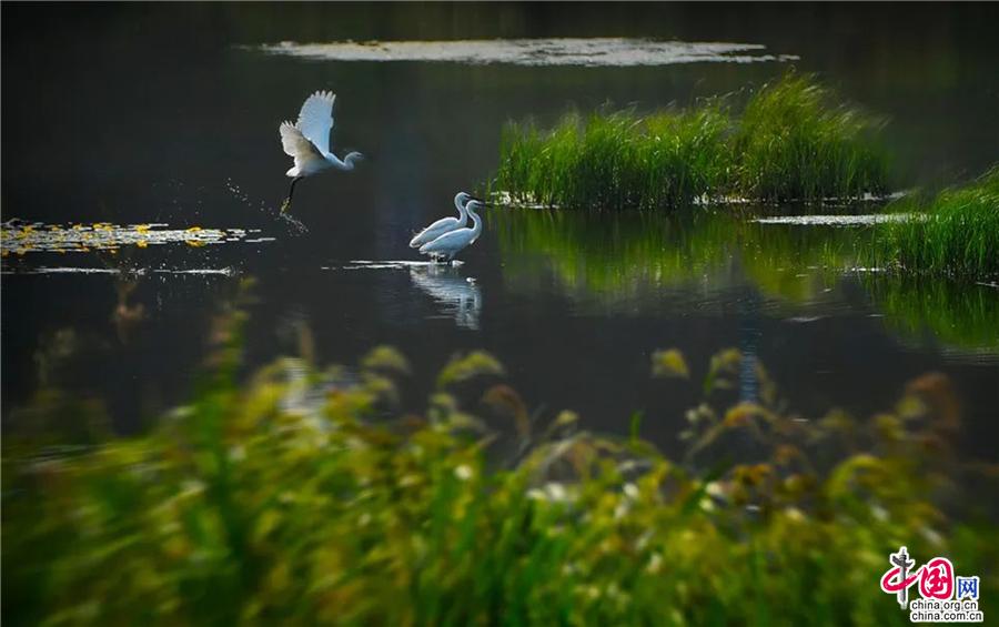 沙湖每年的四月也是最值得期待的。一年一度的國(guó)際觀鳥節(jié)總能吸引大批的游客和攝影愛好者,不遠(yuǎn)萬里奔赴一場(chǎng)與濕地候鳥的春之約。成千上萬只候鳥齊飛的場(chǎng)景,讓很多游客在感慨這片土地的神奇魅力之時(shí),也常常熱淚盈眶,人與自然和諧共生的畫面,無疑是對(duì)這片土地最好的贊美。在這片廣闊的地域上,金沙、碧水、飛鳥、游魚、遠(yuǎn)山、綠葦相互交織,形成了沙湖春季獨(dú)特的自然景觀。