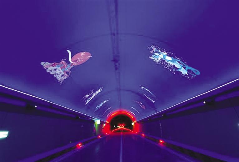 景觀照明系統(tǒng)主體效果充分融合甘肅文化特色,采用“飛天壁畫”“沙漠駝隊”等元素,利用洗墻燈襯托底色,投影燈展現(xiàn)景觀效果,實現(xiàn)為司乘人員打造人在畫中游的視覺感官,有效解決隧道內長時間駕駛的視覺疲勞和情緒波動,提升司乘人員駕駛舒適度。