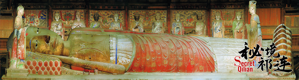 最后讓我們?nèi)グl(fā)現(xiàn),金張掖的神秘色彩,走進(jìn)始建于1098年的大佛寺。大佛殿內(nèi)塑有釋迦牟尼涅槃臥像,佛身長34.5米,游客可以虔誠地在他身旁挪動腳步,體會宏大與渺小的強(qiáng)烈對比。