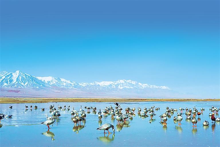 據了解,肅北鹽池灣國際重要濕地,主要作為斑頭雁、赤麻鴨和黑頸鶴的重要繁殖棲息地存在,每年有幾萬只候鳥遷徙、停歇和繁殖,在全球生物多樣性保護及國家生態(tài)安全戰(zhàn)略布局中具有舉足輕重的地位。