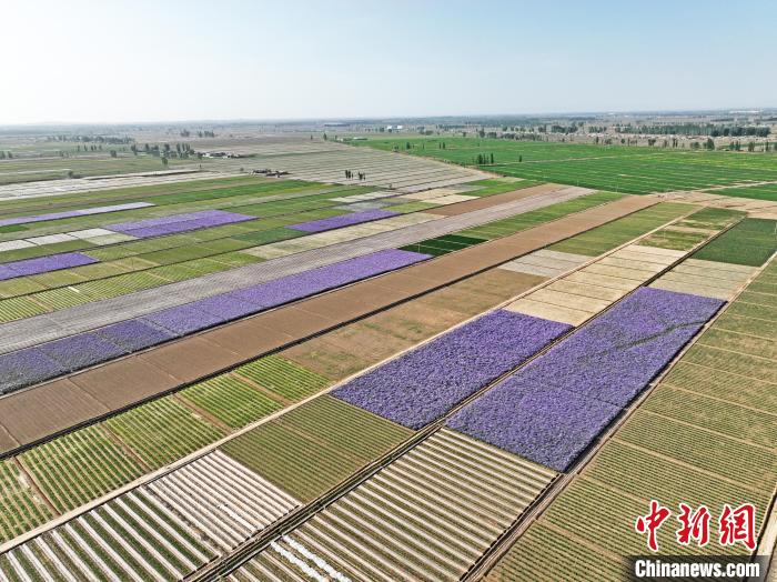 夏日時節(jié),甘肅省張掖市高臺縣駱駝城鎮(zhèn)紅新村和梧桐村的田野間,農(nóng)舍青青、遍野吐翠,阡陌縱橫間五彩斑斕,構(gòu)成一幅美麗的田園風(fēng)光畫。