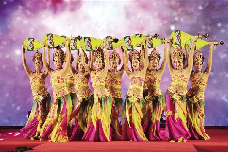 晚上8點,“博物館之夜”主題演出在老兵合唱團帶來的大合唱《領(lǐng)航》中正式拉開帷幕。恢弘大氣的情景舞蹈《張騫出塞》、充滿年輕活力的《追夢人》、曼妙婀娜的《敦煌樂舞》……一個個精彩的節(jié)目,一陣陣熱烈的歡呼與掌聲,臺上臺下情景交融,共同完成了這場流光溢彩的文藝盛宴。