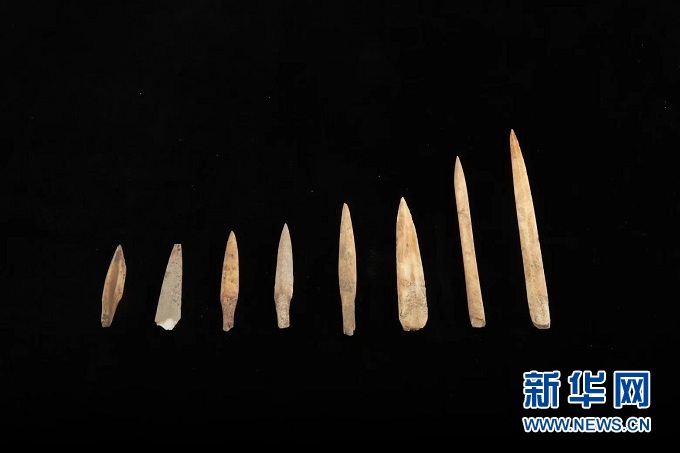 這是甘肅慶陽(yáng)南佐遺址出土的涂有朱砂的骨鏃。(圖片由南佐遺址聯(lián)合考古隊(duì)提供)