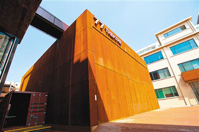 沿著園區(qū)里迂回旋轉(zhuǎn)的鋼梯來(lái)到樓頂,眼前豁然開(kāi)朗——與園區(qū)一街之隔有中國(guó)美術(shù)館、三聯(lián)書(shū)店,向西是北大紅樓舊址,向南是北京人民藝術(shù)劇院,向北則是中央戲劇學(xué)院。“我們?cè)谡{(diào)研中發(fā)現(xiàn),周邊戲劇、影視資源非常豐富,于是考慮將園區(qū)定位與東城區(qū)推進(jìn)‘戲劇之城’建設(shè)發(fā)展的方向相契合。”77文創(chuàng)園運(yùn)營(yíng)方、東方道樸公司總經(jīng)理李明說(shuō)。