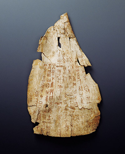 商代是中國文字形成和發(fā)展的重要時期,至遲從商代中晚期開始,中國已出現(xiàn)了最早的、相對成熟的文字體系,其中甲骨文、金文數(shù)量最繁,意義重大。圖為收藏于中國國家博物館的王賓中丁·王往逐兕涂朱卜骨刻辭?!⌒氯A社發(fā) 中國國家博物館供圖