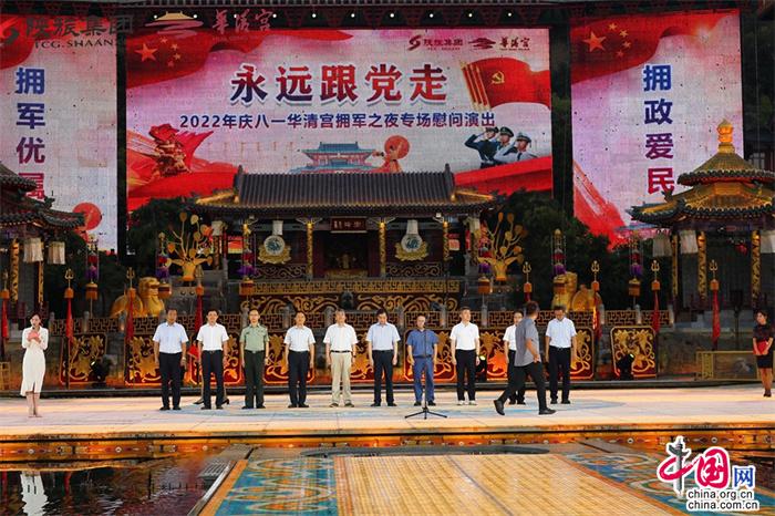 7月31日,陜西華清宮景區(qū)舉辦“永遠(yuǎn)跟黨走·2022年慶八一華清宮擁軍之夜專場(chǎng)慰問(wèn)演出”。
