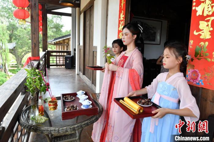 資料圖:圖為身著漢服的姑娘們展現(xiàn)了屬于七夕最傳統(tǒng)的節(jié)日文化內容——祭星乞巧。中新社記者 劉可耕 攝