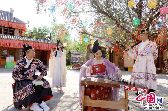 活動(dòng)期間舉行的歌舞演藝也延續(xù)了民俗活動(dòng)的精彩,由藝術(shù)評(píng)書和敦煌鼓舞共同呈現(xiàn)的“嫦娥奔月”表演、傳統(tǒng)樂器搭配的中秋古曲會(huì)等一個(gè)個(gè)精彩節(jié)目,將傳統(tǒng)文化與歌舞相融合,通過一種全新的面貌和形式將深厚的文化底蘊(yùn)呈現(xiàn)在群眾面前。