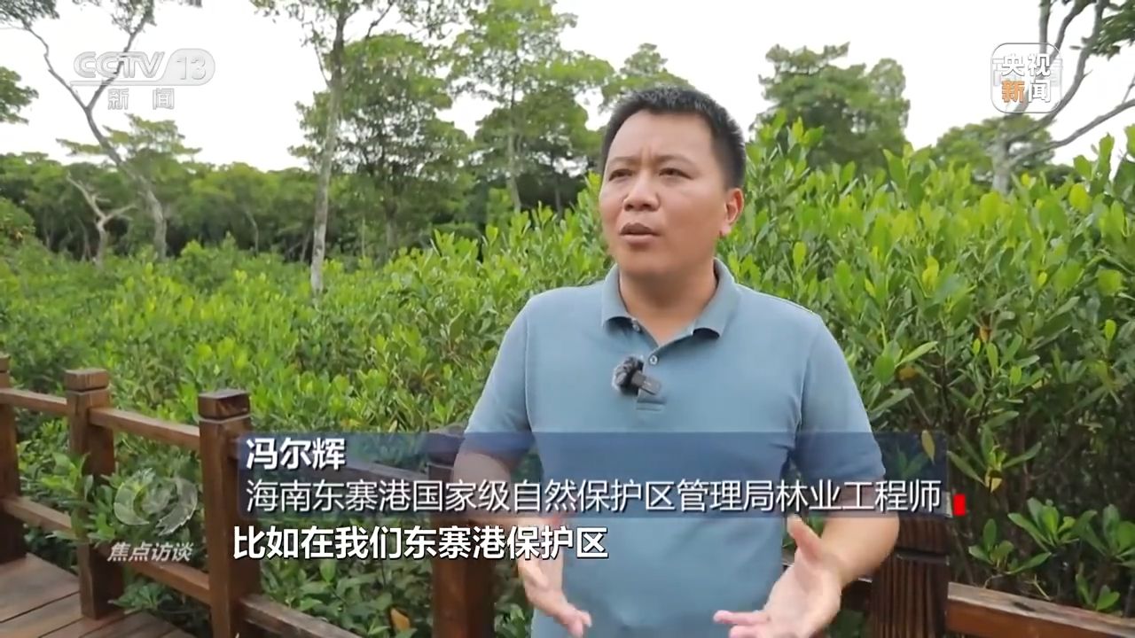 海南??谑辛謽I(yè)局局長、林業(yè)高級工程師 錢軍:在東寨港區(qū)域,我們修復(fù)了4783畝的紅樹林。通過對一系列生態(tài)修復(fù),保護(hù)好紅樹林,也讓子孫后代享受保護(hù)紅樹林帶來的紅利。