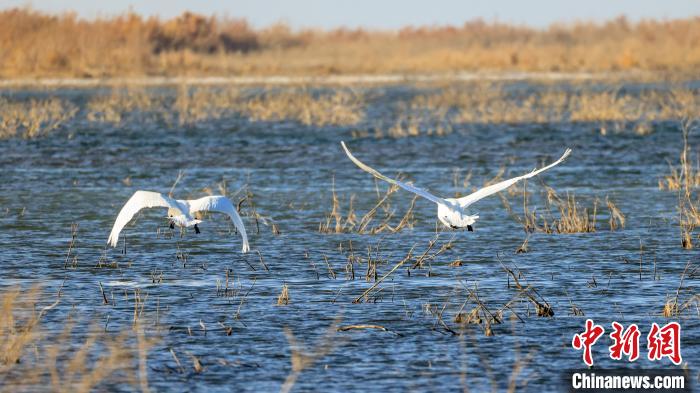 博湖縣境內(nèi)的博斯騰湖白鷺洲迎來(lái)大批天鵝?!∧昀?nbsp;攝