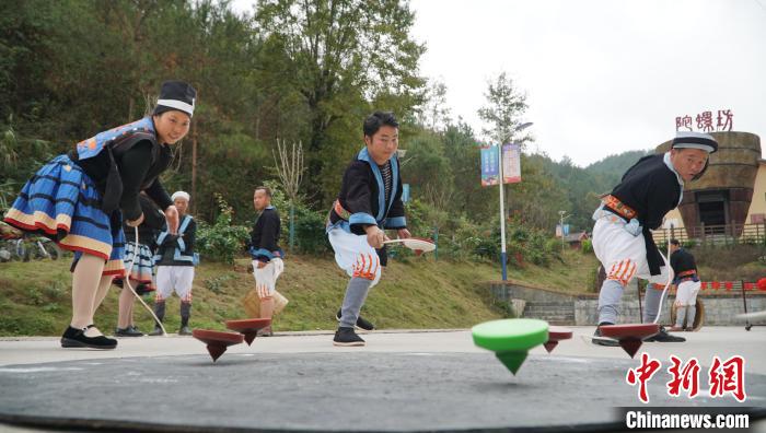 圖為白褲瑤居民正在玩轉(zhuǎn)陀螺。韋國政 攝