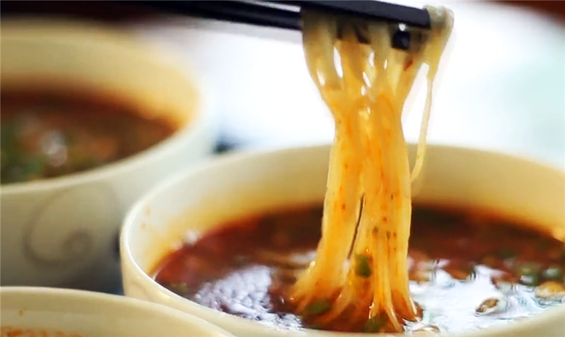 盛一碗細(xì)面,再澆些許酸湯,酸中帶辣、柔軟耐嚼、湯香撲鼻,開胃爽口、色香味俱佳。特別是夏季時(shí)分,一碗酸湯面絕對(duì)是開胃醒腦又提神的不二之選。